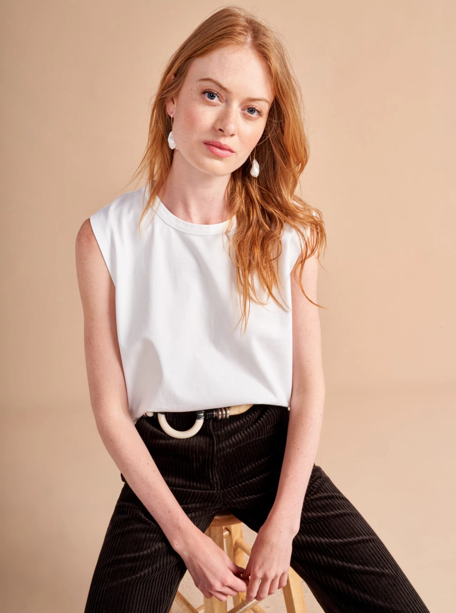 The muscle tee, often associated with the 80’s fitness craze and showing off what you got, has entered a new and elevated era ready to be paired back to belted, billowing trousers, under blazers or simple denim.