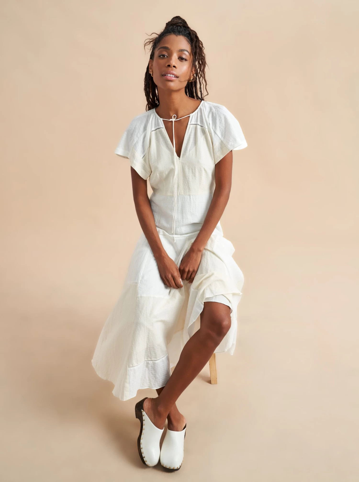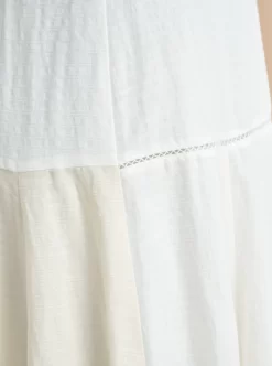 Channel your inner ethereal goddess in this airy, spaghetti strap, tonal patchwork dress. Totally feminine yet lightweight, the back panel is smocked for ease. Pair with summer sandals or a heel for those sultry summer nights.