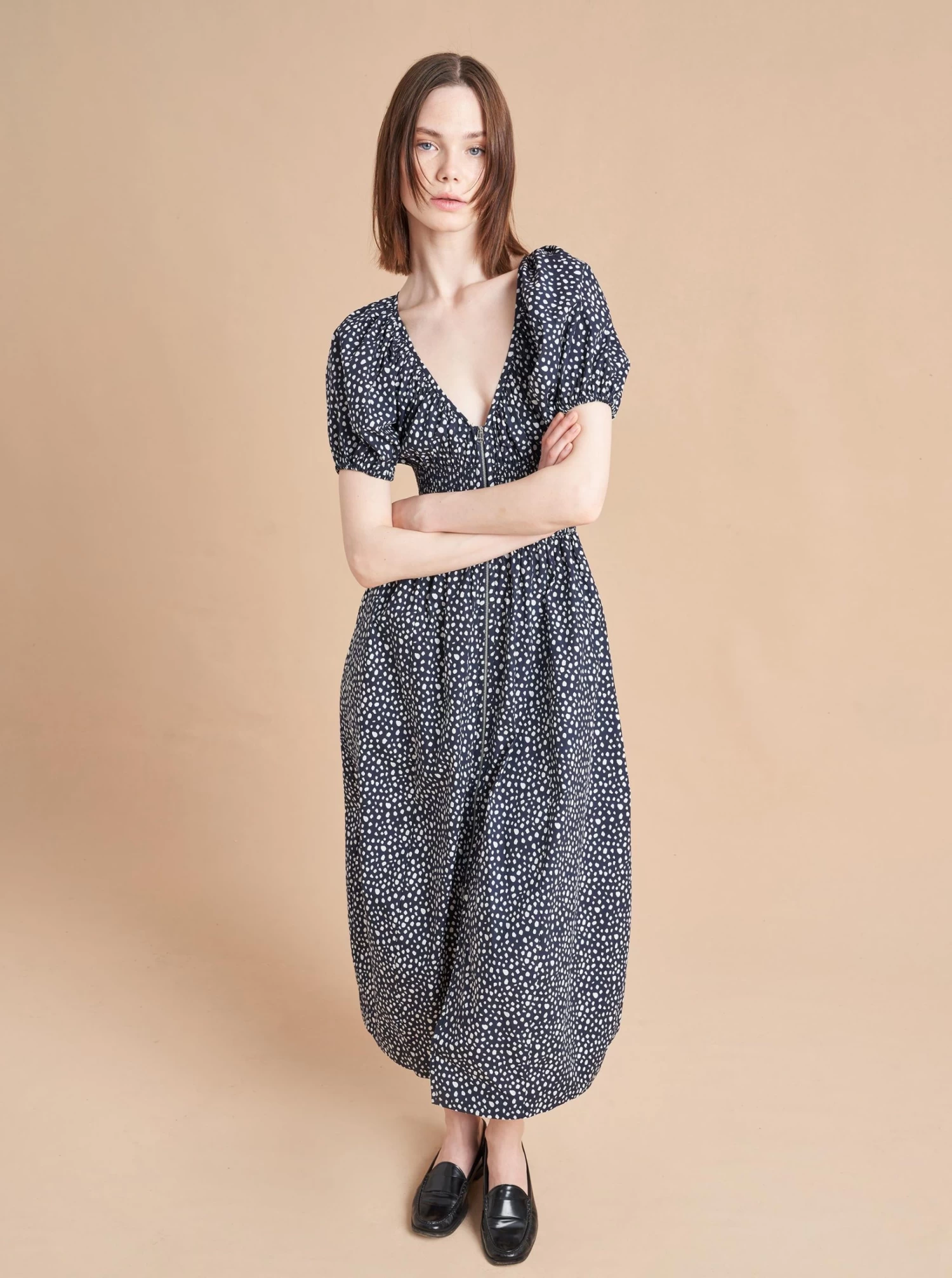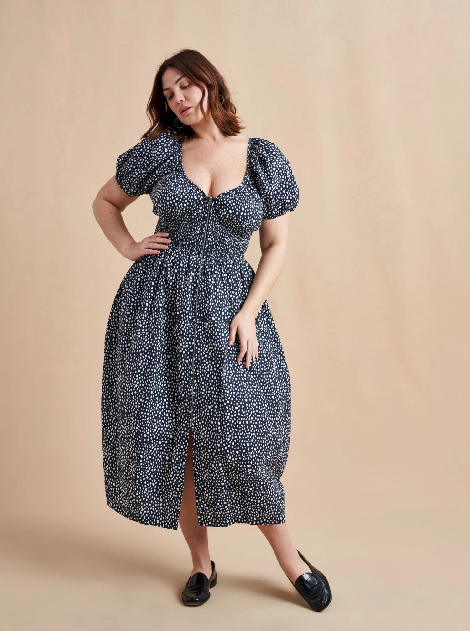 What if we made a dress with all of our favorite things? Meet Celina, our romantic yet sporty, smocked waist, puff sleeve, v-neck, must-have dress featuring a tulip skirt with pockets and a two-way zipper to show as little or as much skin as you like? Did we miss anything?