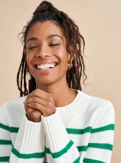 Our new take on the Breton sweater, inspired by the one and only, Charlotte Gainsbourg. Cut from our signature, deliciously ribbed cashmere, this easy sweater boasts a classic drop shoulder with gradated stripes in a roomier fit.