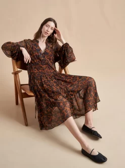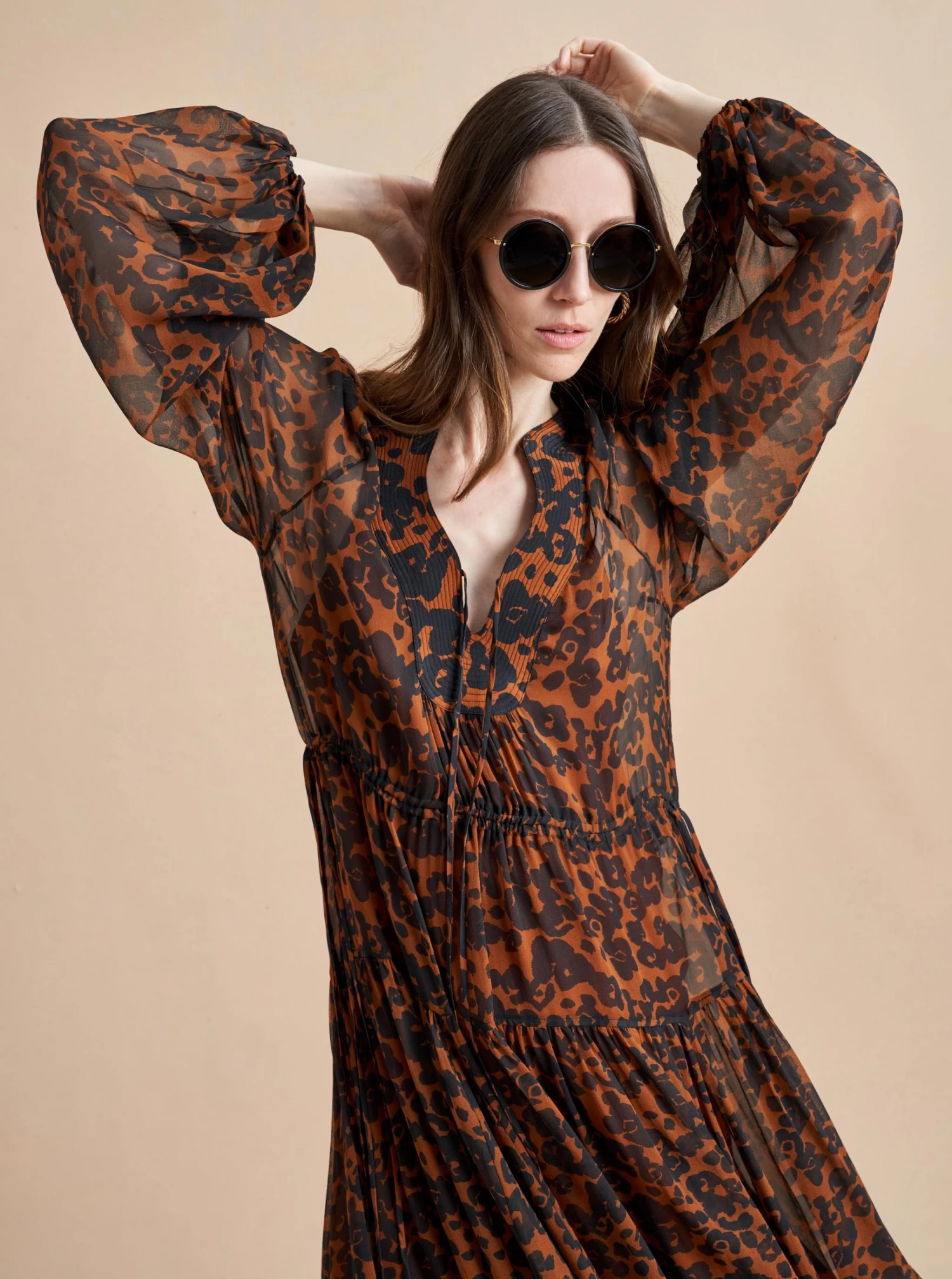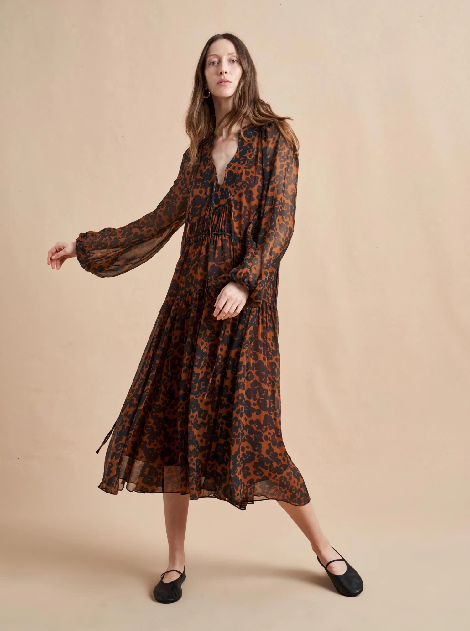 Meet Diane, an update to our best-selling Pippa Dress, this silky version features the same drawstring waist and trapunto stitching but with feminine balloon sleeves with elastic cuffs.