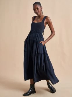 Georgia might be the only dress on your mind when you think about what to wear. This easy, slip-of-a-thing is actually fitted in all the right places with a smocked back panel for ease, silk godets for the perfect drape and delicate, raw edge details on the straps and vertical seams. Pair with heels or flats, but you will be the one leaving an impression.