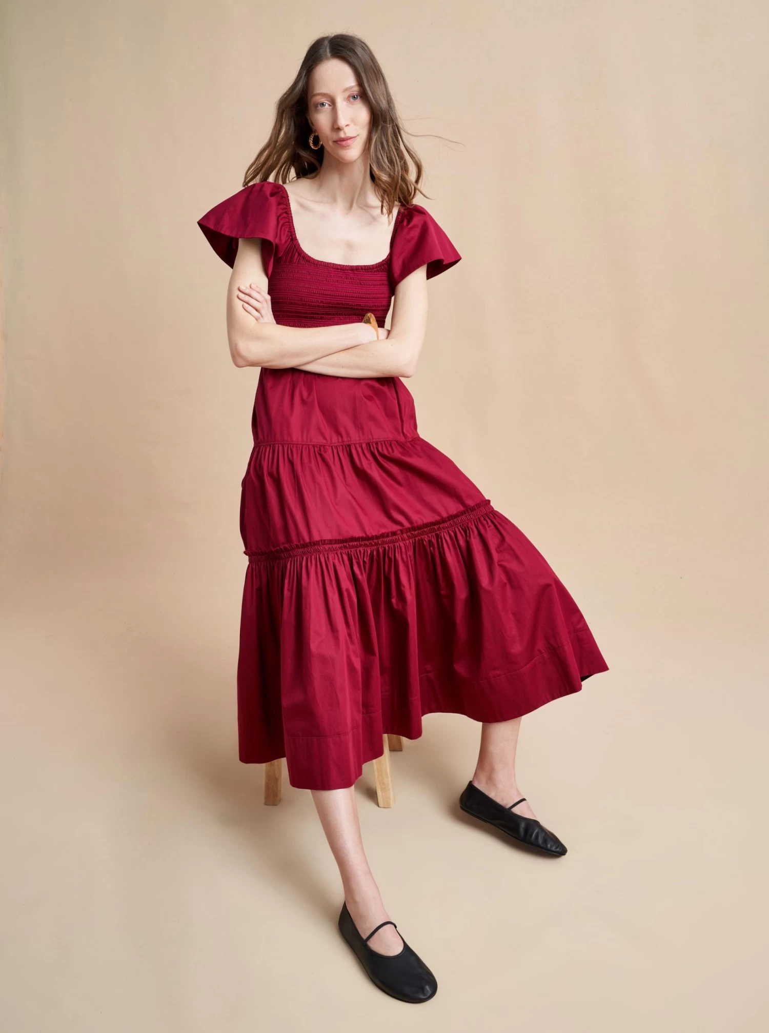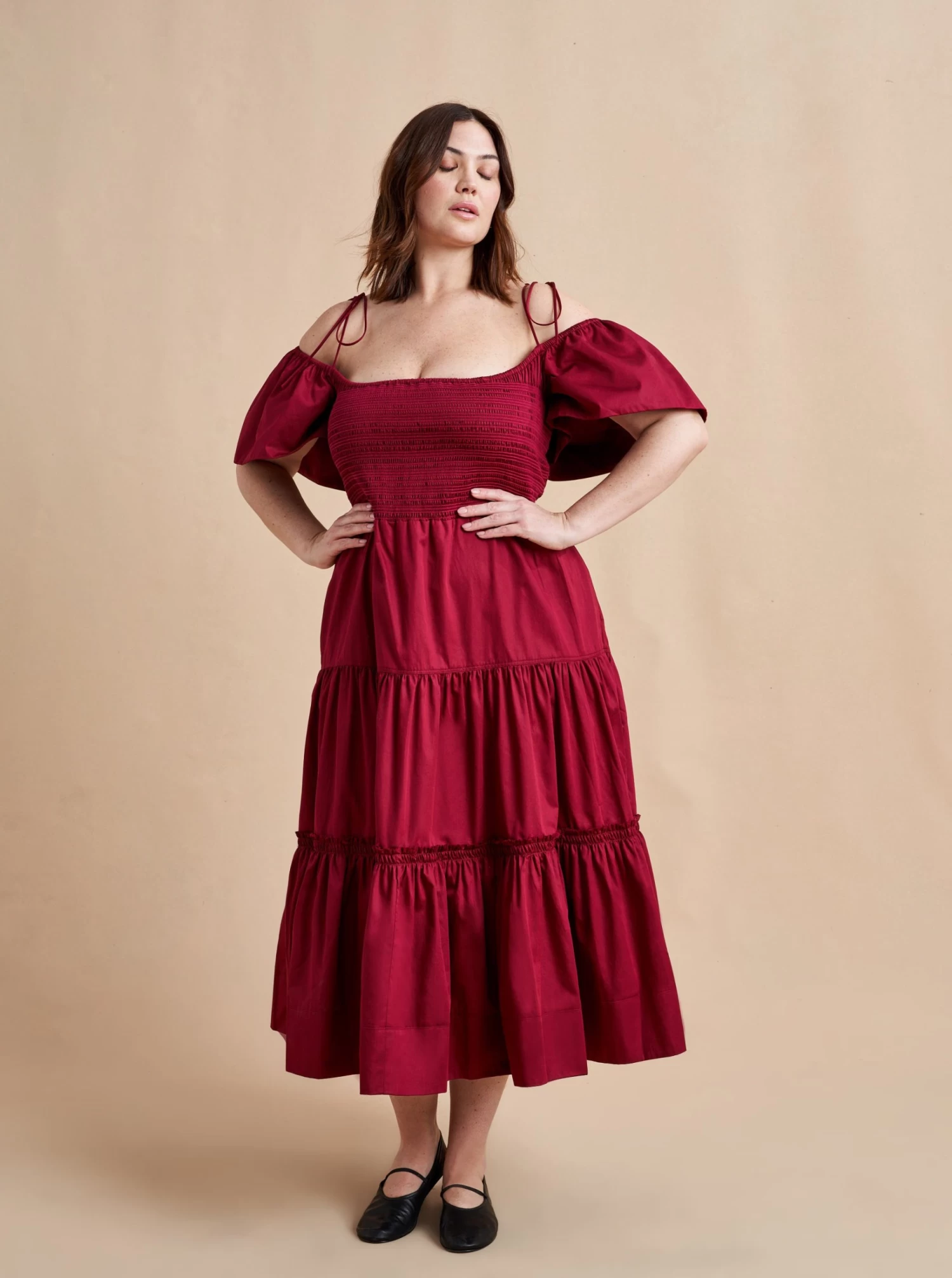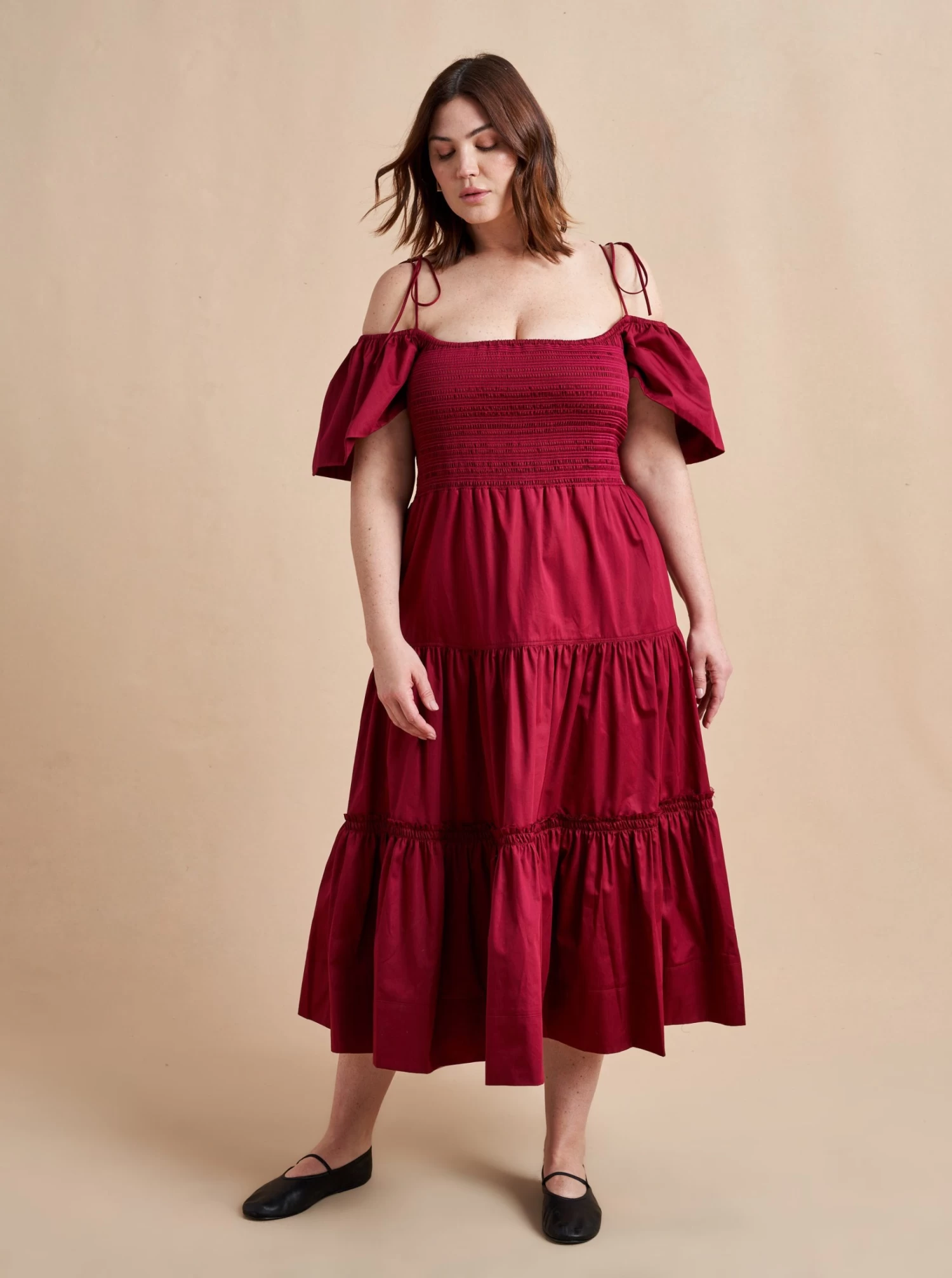 The ideal transitional dress in light cotton, to be worn on or off-the-shoulder with spaghetti straps and smocked bodice. The epitome of day-to-night, wear it with flats for day or pair with heels for an easy, breezy evening look.