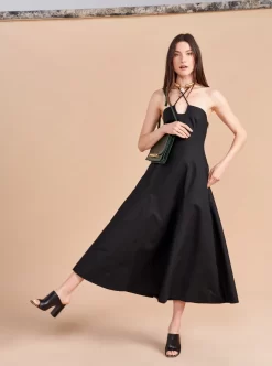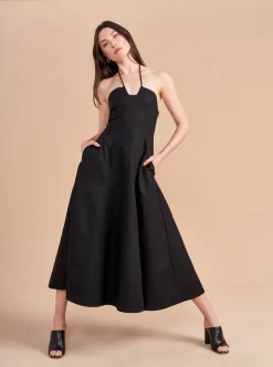 Some dresses are not meant to sit in your closet. This one will call your name so give in to the impulse, zip her up, and paint the town with this cotton stretch, halter neck, fit and flare frock. Dress up to get down.