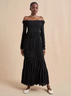 A sister to the Mary Alice Dress, this version features long, narrow sleeves in a silky-soft, stretch viscose with the same flattering tiered mermaid skirt and smocked bodice for ease of fit.Â