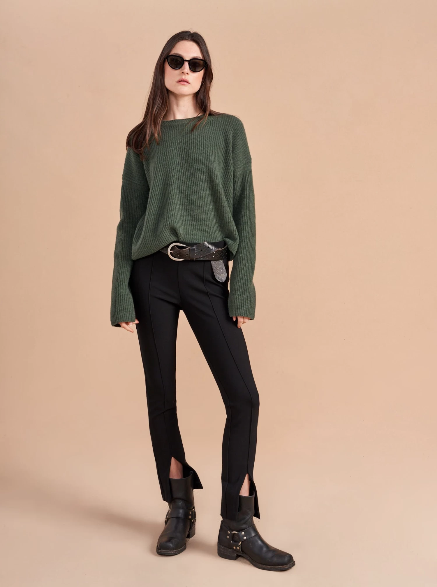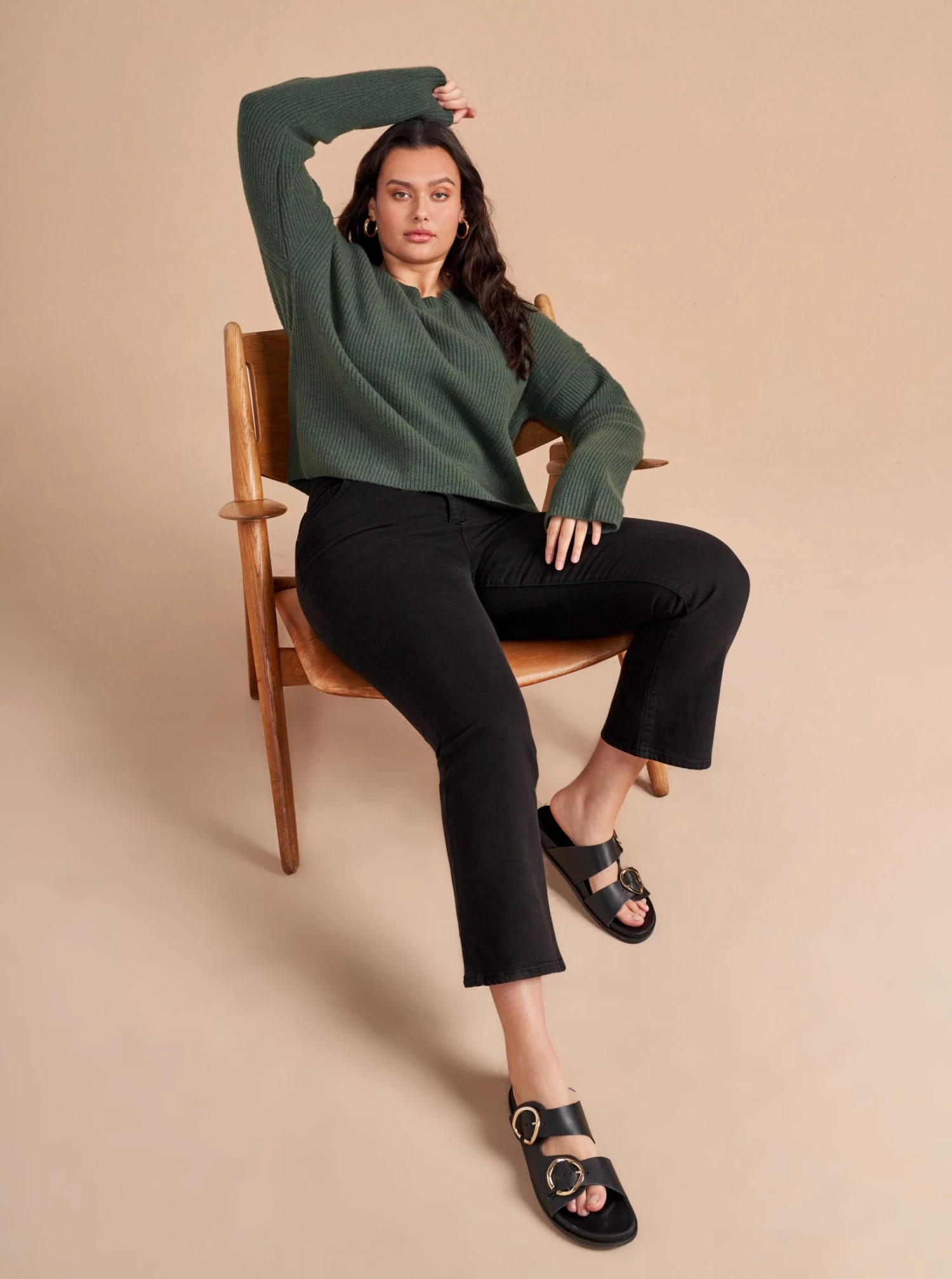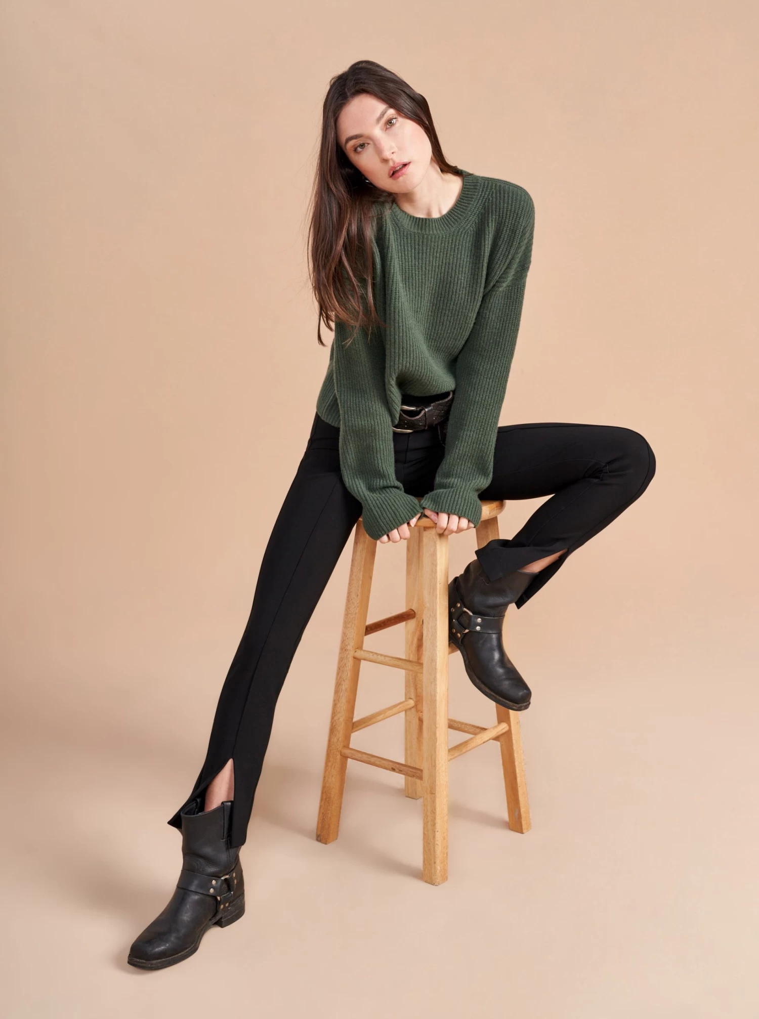 This is it. This is your everyday, never-without, take-with-you-everywhere sweater that will always have your back. Deliciously ribbed cashmere in a loose crewneck and slightly cropped silhouette means you need one in every color for tous les jours.