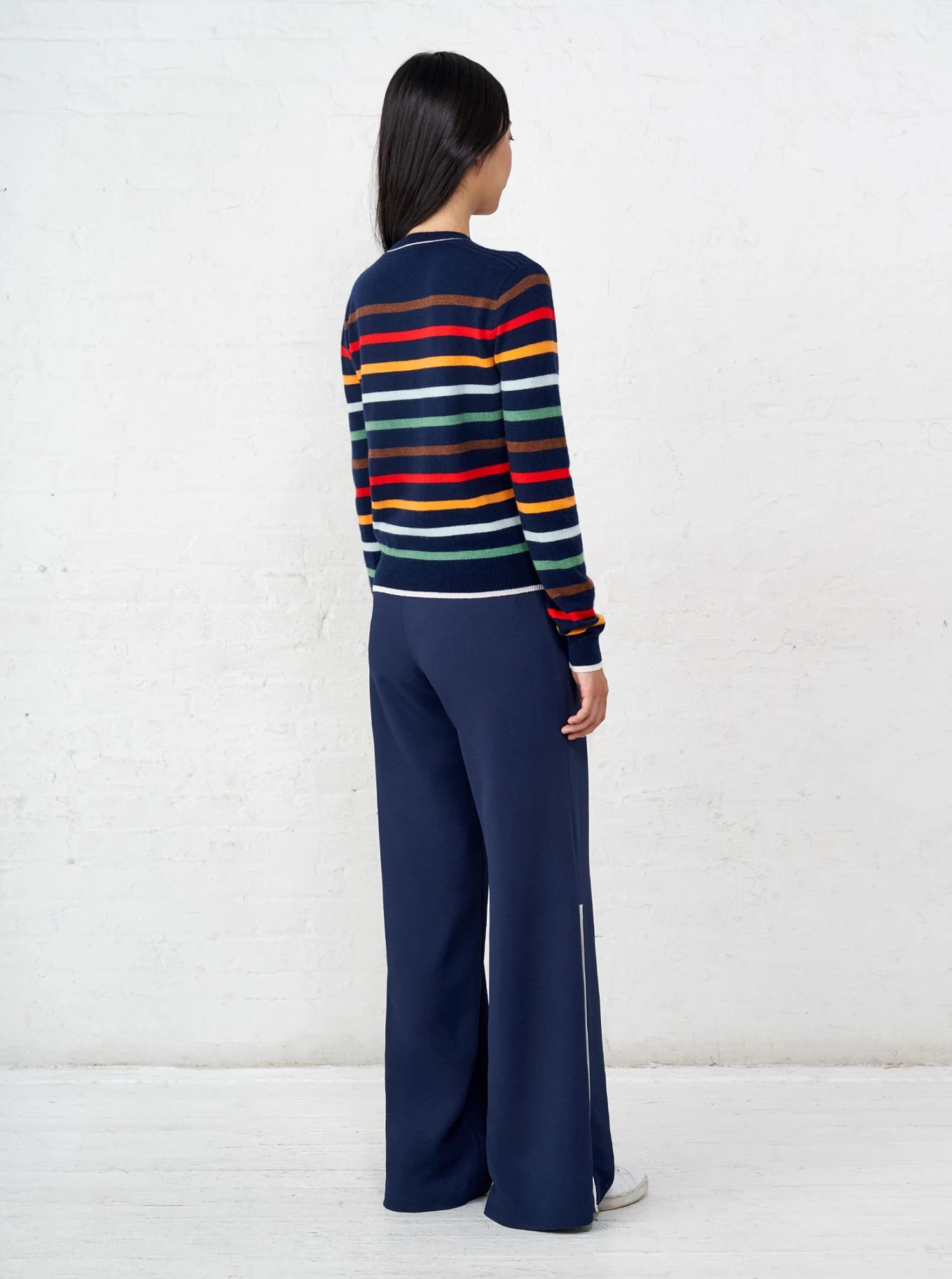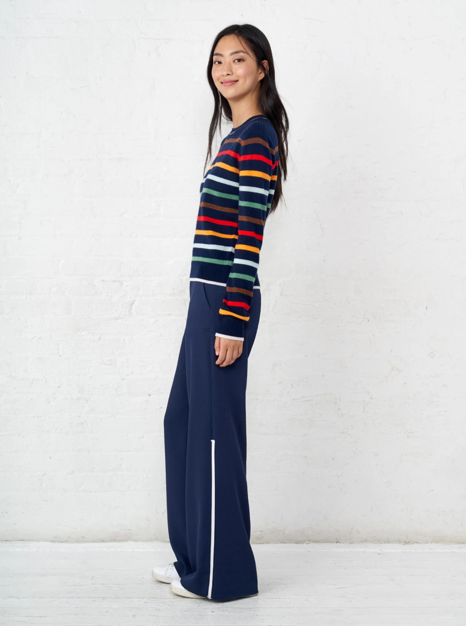 Our newest addition to the La Ligne family, the classic, simple and sweet, Neat Sweater in wool-cashmere, envisioned in navy with rainbow stripes, is a no-brainer and will give you that extra polish and poise (not that you need it).