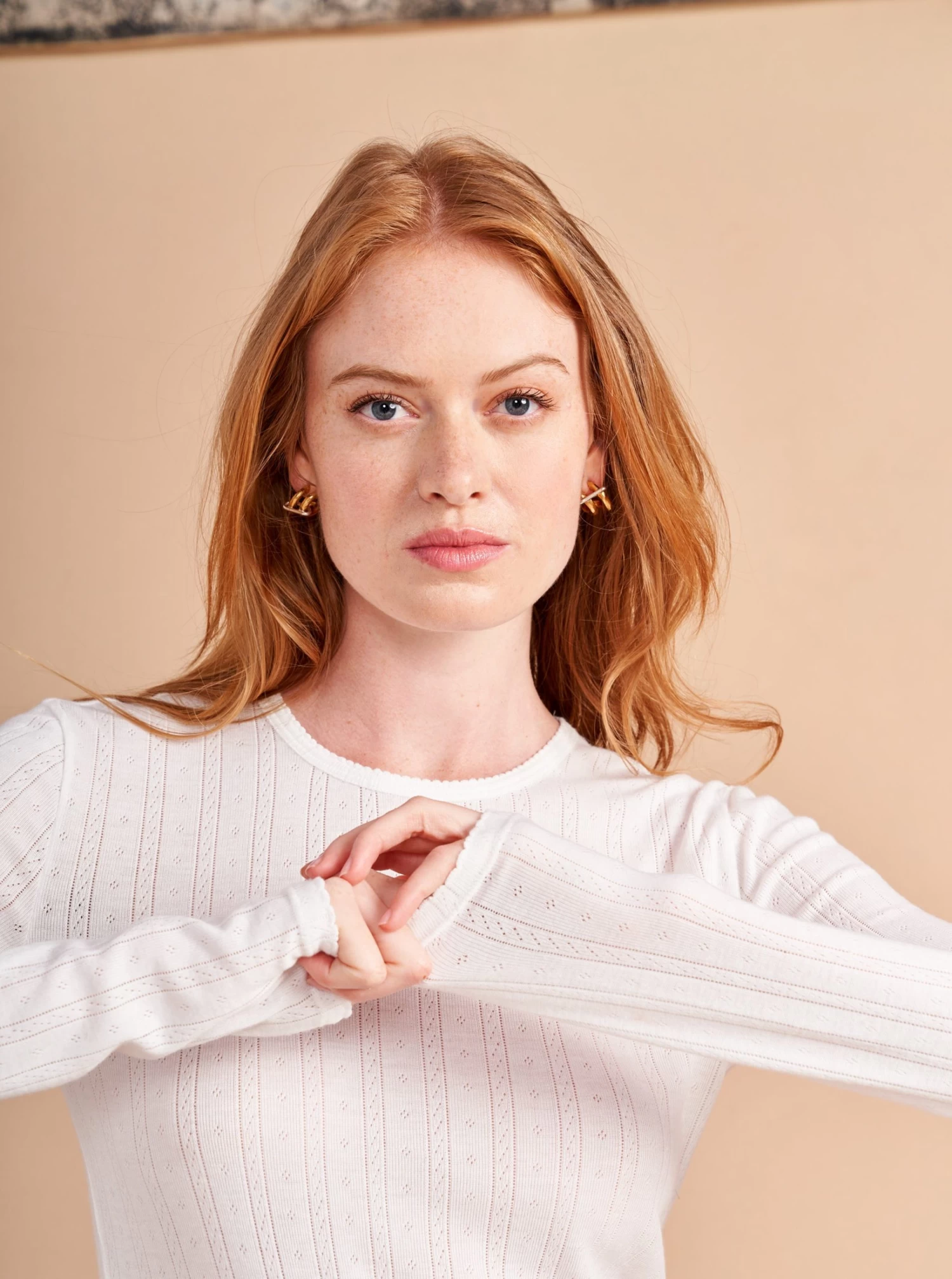 Our tee collection would not be complete without this tried and true French pointelle classic. Made from the softest viscose blend, this tee features scallop details at the neck and hem with pointelle lines throughout. C’est magnifique!
