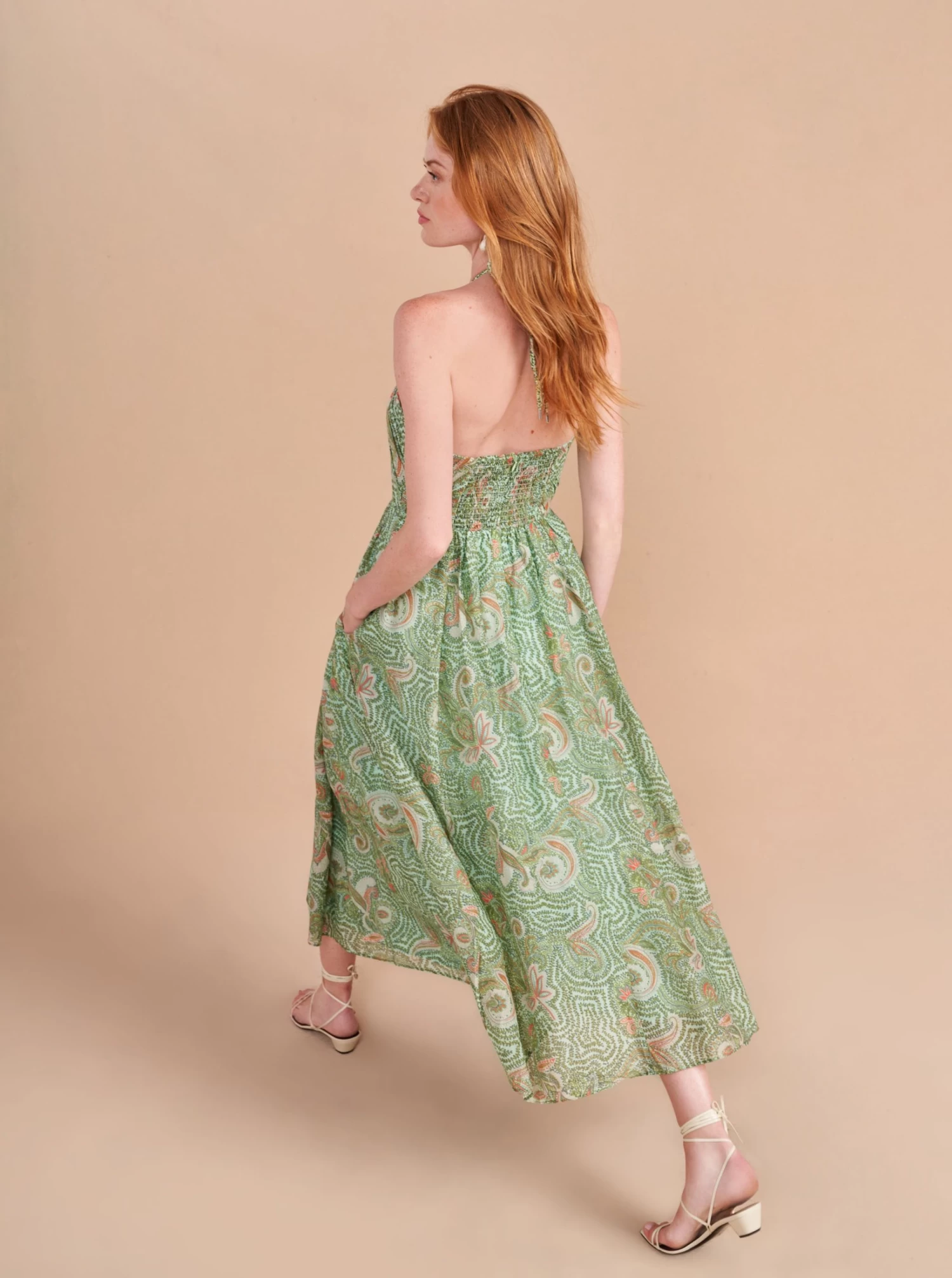Few dresses can elevate your mood when you slip them on but the Rosemary is one of them. This halter neck dress with delicate ruching from the waist has smocking in the back for ease. We cut it in a luxe silk/cotton blend for maximum fluidity so rest assured (like all our pieces), you wear the dress and the dress doesn’t wear you.