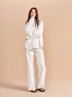 Who doesn’t love a borrowed-from-the-boys moment? The next one has arrived with our oversized Val Shirt with button cuffs complete with a little borrowed-from-the-girls feminine scallop detail on the front placket. And no more fretting about what to wear it with as we designed a pant to match.Â