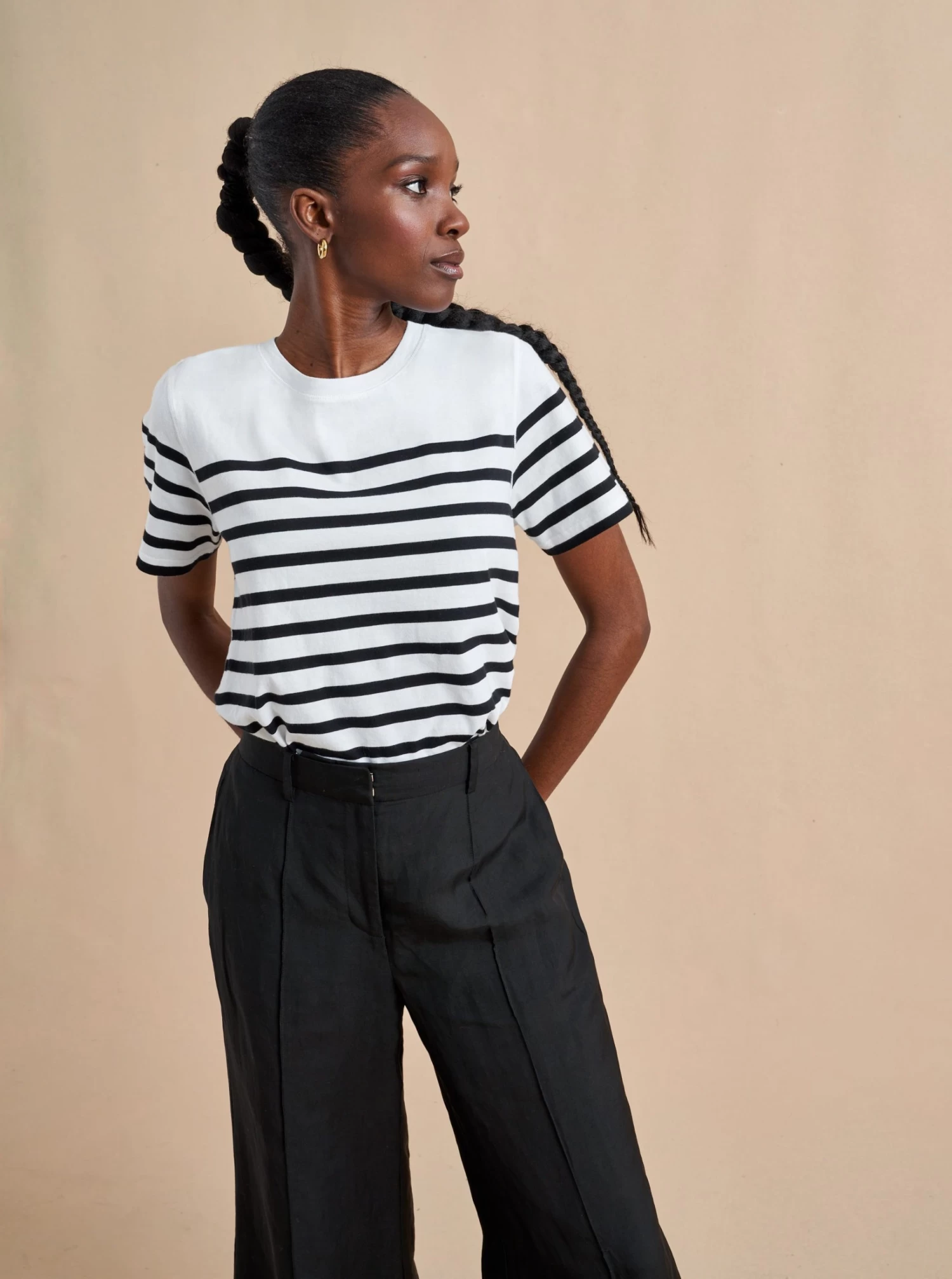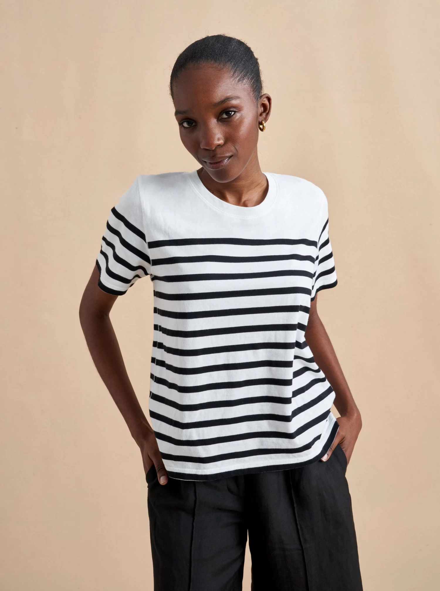 What makes the perfect tee? Why don’t you ask our co-founders? Valerie’s classic tee in super soft cotton is more of a boyfriend, generous fit, perfect for throwing on over her namesake, skinny jean (or any of our jeans ;-))