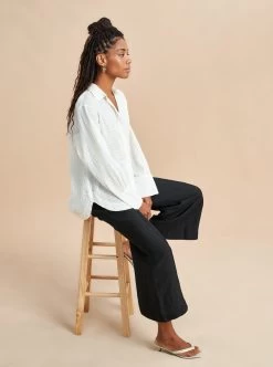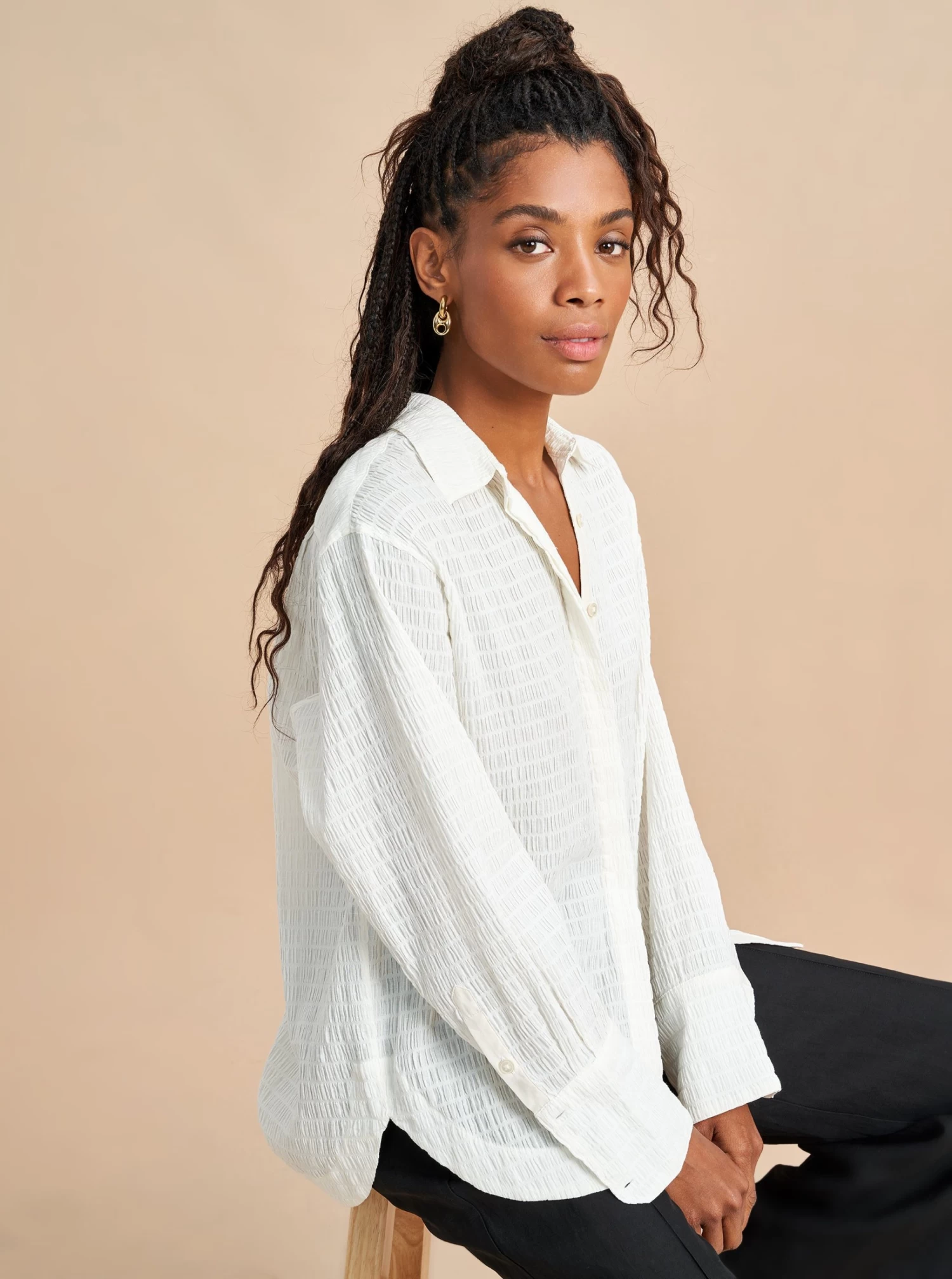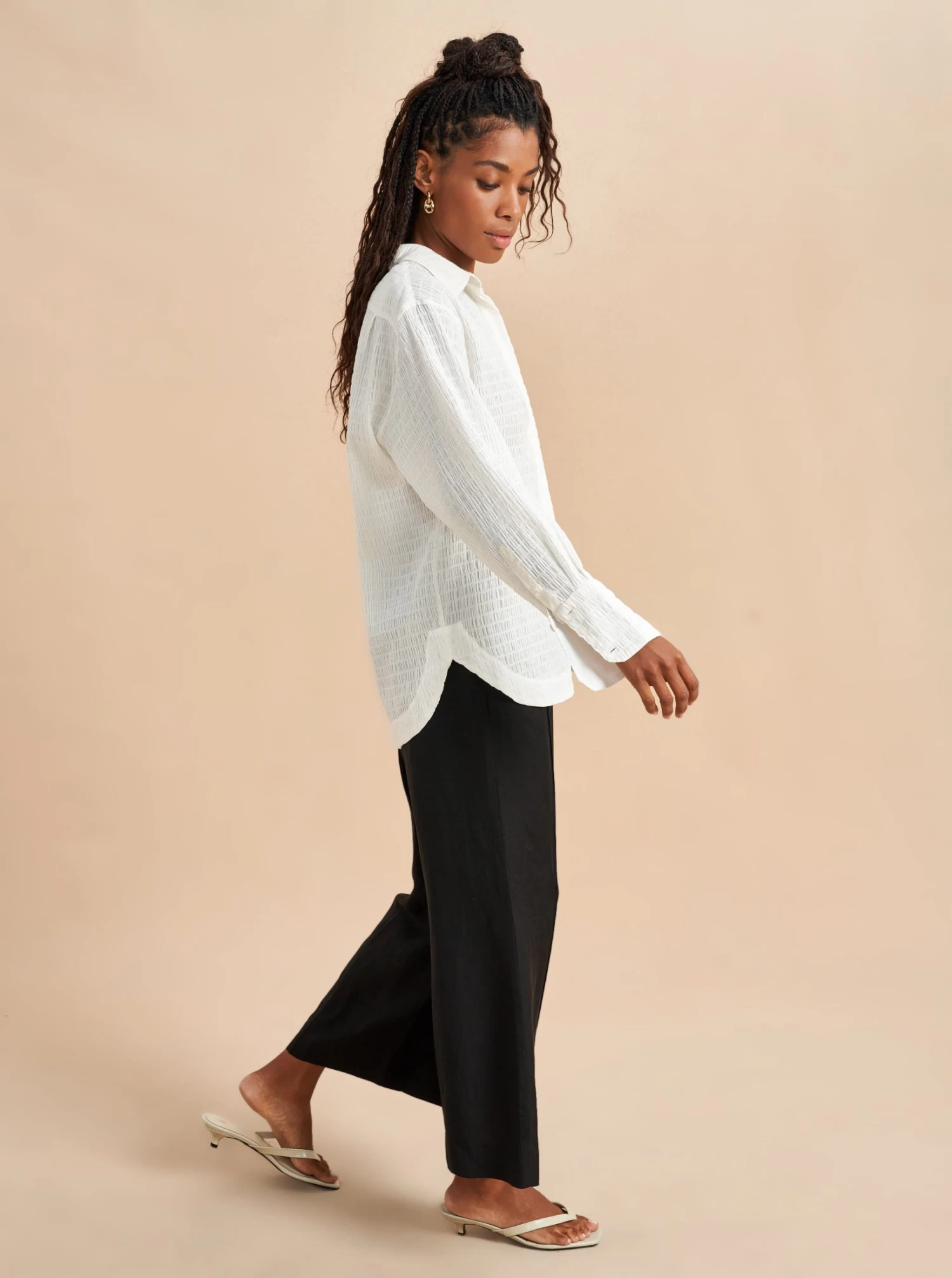 Who doesn’t love a “borrowed from the boys moment”? The next one has arrived with our oversized Val button down shirt with exaggerated cuffs in textured ivory. And no more fretting about what to wear it with as we designed a short to match to get you through your holidays. For a more covered option, pair it back to our Tess or Lizzie Pant.
