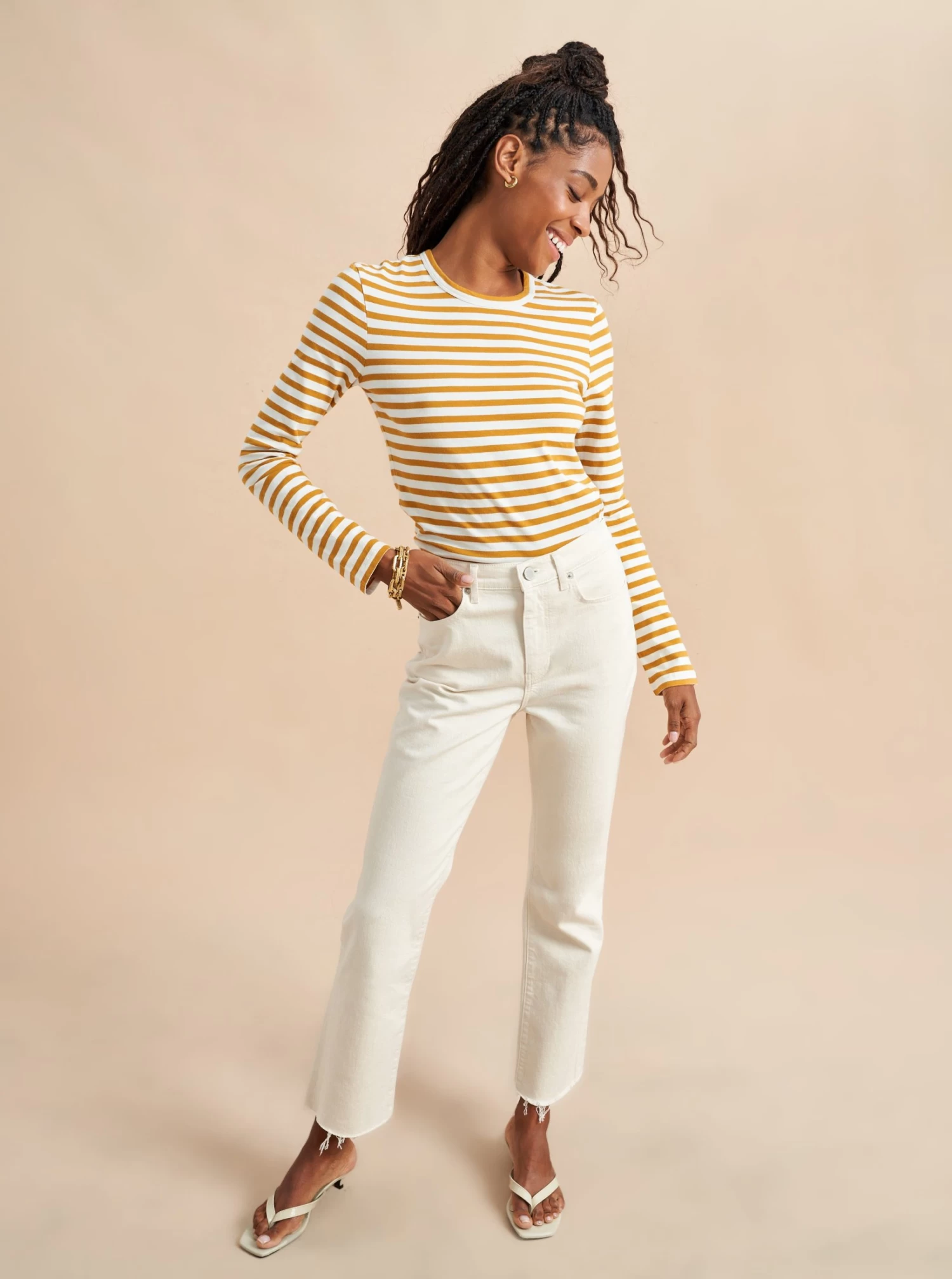 The classic, high-rise, straight-leg jean (now in stretch!) that gets better after each wear, never goes out of style, never disappoints and you can never get enough of, AKA The Molly jean or The Mom Jean, aptly named after our co-founder that will take you from 9 to 5, after hours and beyond.