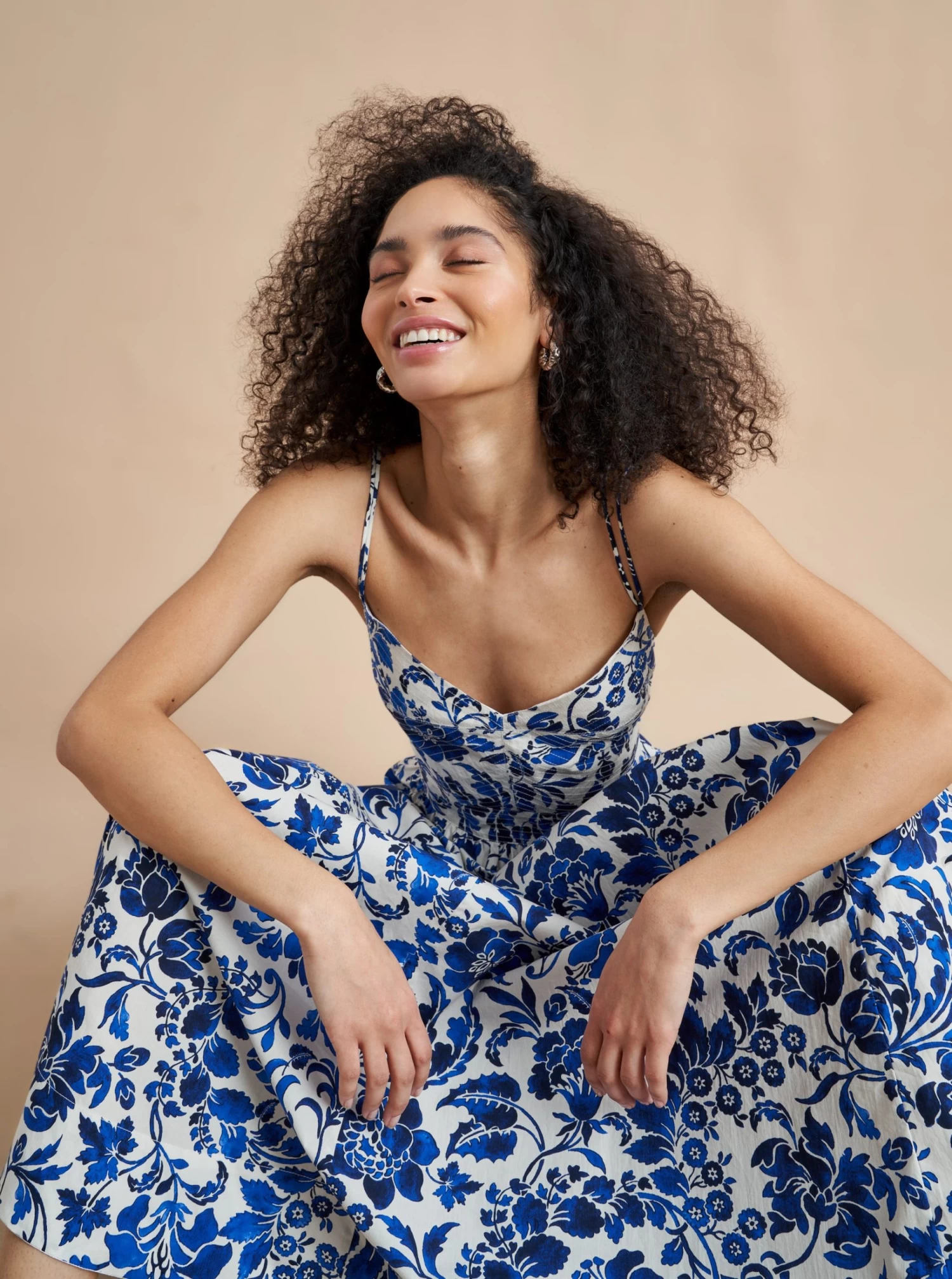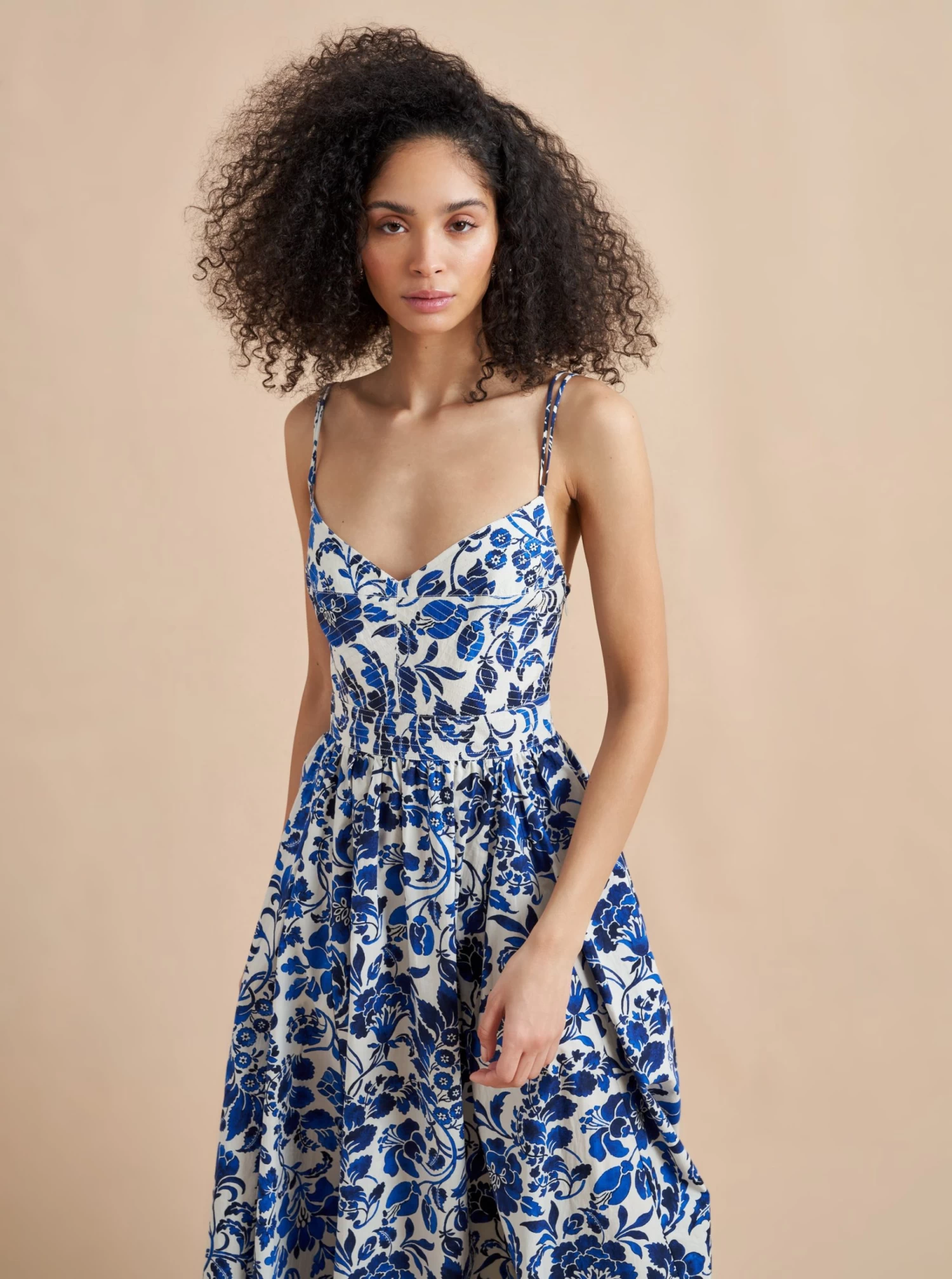 Named after La Bande member Tracy Dubb, this exquisitely detailed dress features a sweetheart neckline with double spaghetti straps, a trapunto stitched bodice with smocked back panel for ease of fit, and a sweeping skirt with side seam pockets. There is nothing not to love in this fabulously romantic dress.